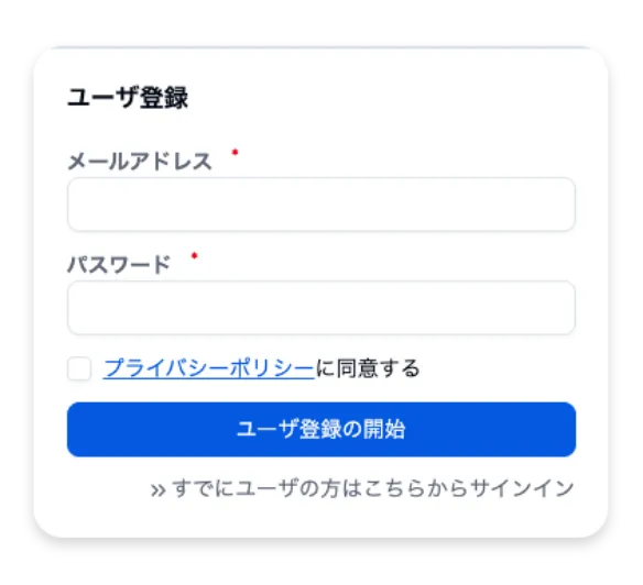メールアドレスとパスワードを設定し、ポリシーに同意 -